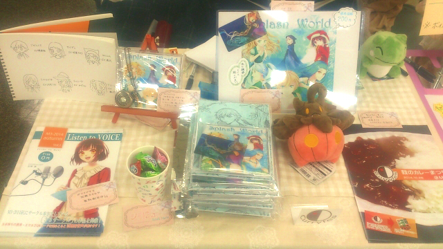 当日はこんな感じのスペースに、咲楽ちゆり、八百雨、あきつの3人が交代でおりました。